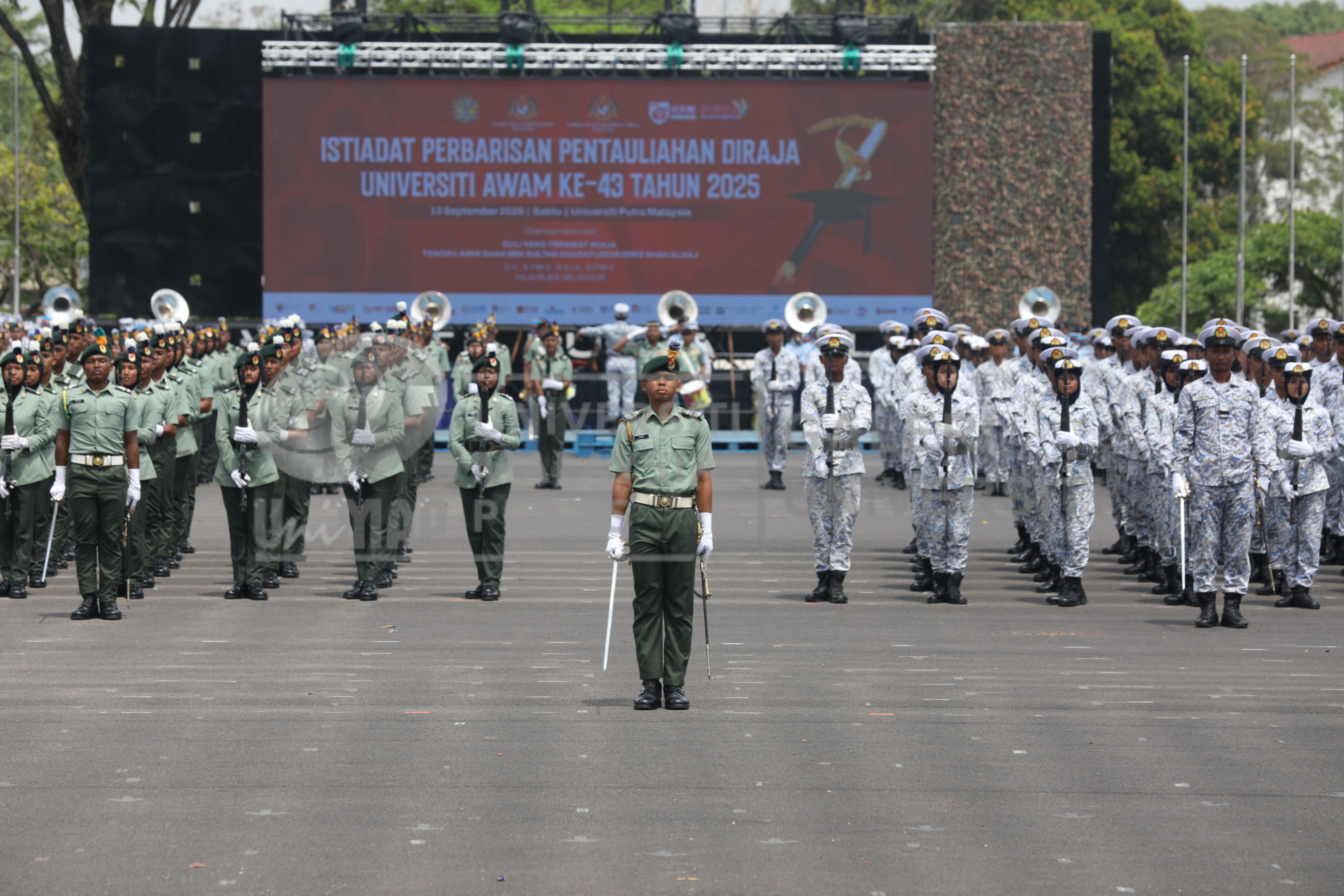 | photo2025122822.jpg | Pegawai Kadet PALAPES melakukan perbarisan sempena persiapan Istiadat Perbarisan Pentauliahan Diraja dan Pengurniaan Watikah Tauliah Pegawai Kadet PALAPES Universiti Awam Ke-43 Tahun 2025 pada 11 September 2025 di Universiti Putra Malaysia (UPM). | 3.08 MB | JPEG | View/Open |