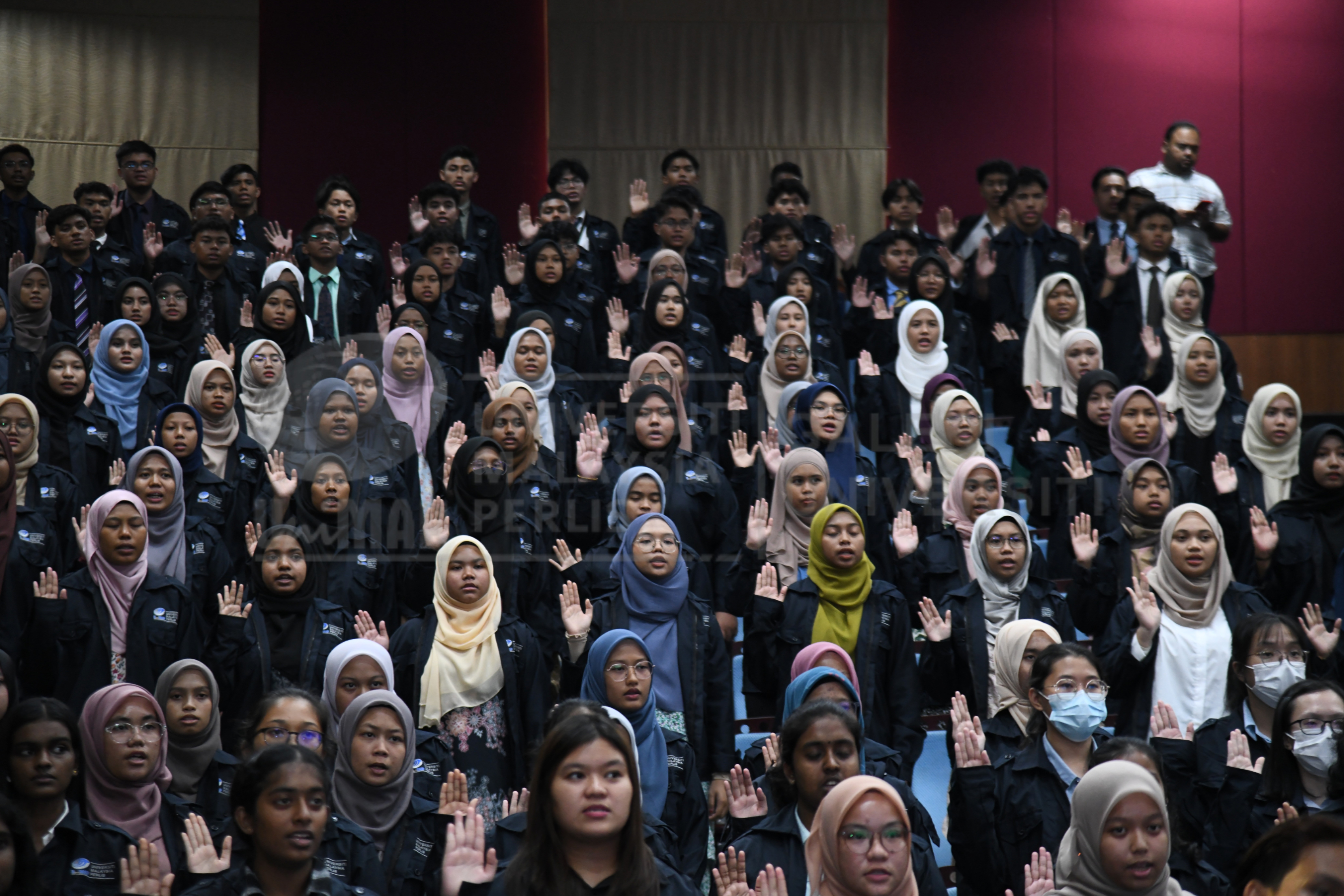 | photo202310439.jpg | Pelajar baharu Universiti Malaysia Perlis (UniMAP) sedang mengangkat sumpah pada Majlis Sambutan Siswa Siswi ambilan Diploma Sidang Akademik 2023/2024 sempena Minggu Suai Kenal (MSK) pada 24 Julai 2023 yang berlangsung di Dewan Kecemerlangan Kampus Alam UniMAP, Pauh Putra. | 3.65 MB | JPEG | View/Open |