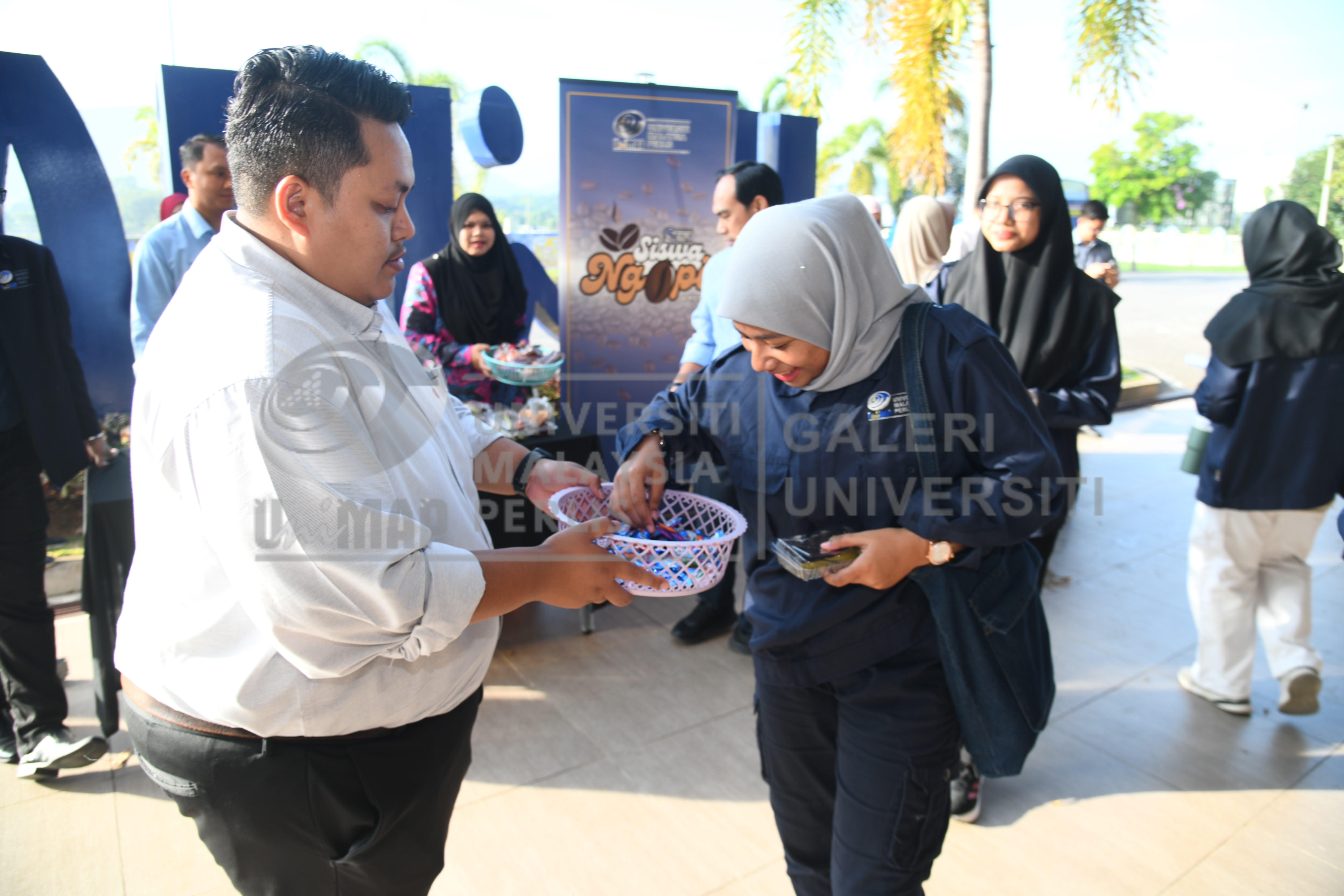 | photo2026012871.jpg | Encik Ahmad Mu'adz bin Nazari, Pegawai Tadbir di Jabatan Hal Ehwal Pelajar (JHEP), UniMAP sedang mengagihkan gula-gula kepada pelajar-pelajar UniMAP sempena program Coffee to Go @ HEPA sebelum memasuki dewan peperiksaan sempena Peperiksaan Akhir Semester Pertama Program Diploma Sidang Akademik 2025/2026. | 2.61 MB | JPEG | View/Open |