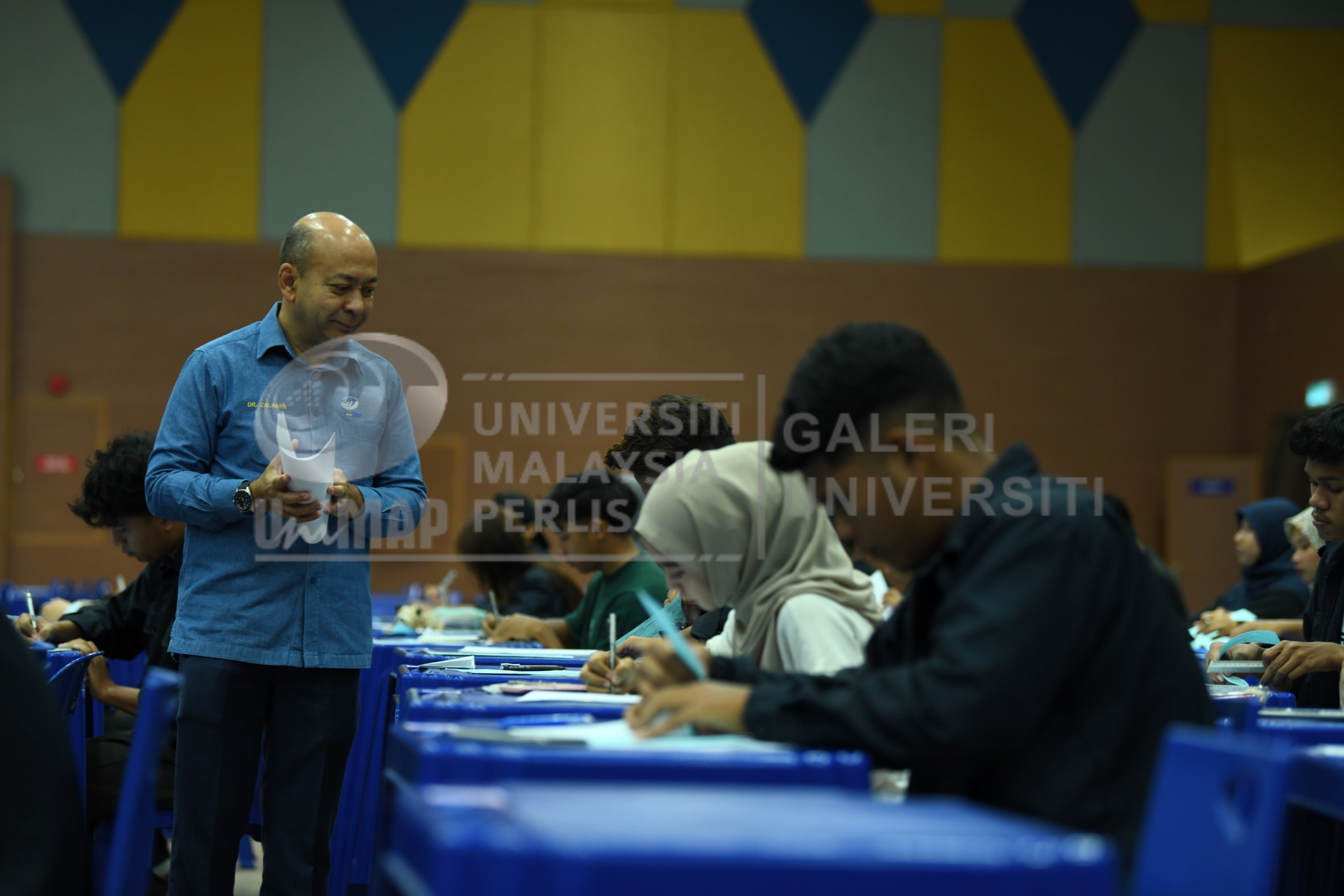Keywords: | Dato' Prof. Ts. Dr. Zaliman Sauli;Naib Canselor UniMAP;Sesi Peperiksaan Pelajar Diploma Semester 1 Sidang Akademik 2024/2025;Pelajar Universiti Malaysia Perlis (UniMAP) | Issue Date: | 19-Nov-2024 | Type: | Image | Abstract: | YBhg. Dato' Prof. Ts. Dr. Zaliman Sauli, Naib Canselor UniMAP sedang memantau perjalanan peperiksaan di Dewan Ilmu sempena Peperiksaan Akhir Semester Pertama Program Diploma Sidang Akademik 2025/2026. | URI: | http://hdl.handle.net/20.500.14258/1576 | Rights: | Dewan Ilmu, Kampus Alam UniMAP, Pauh Putra |