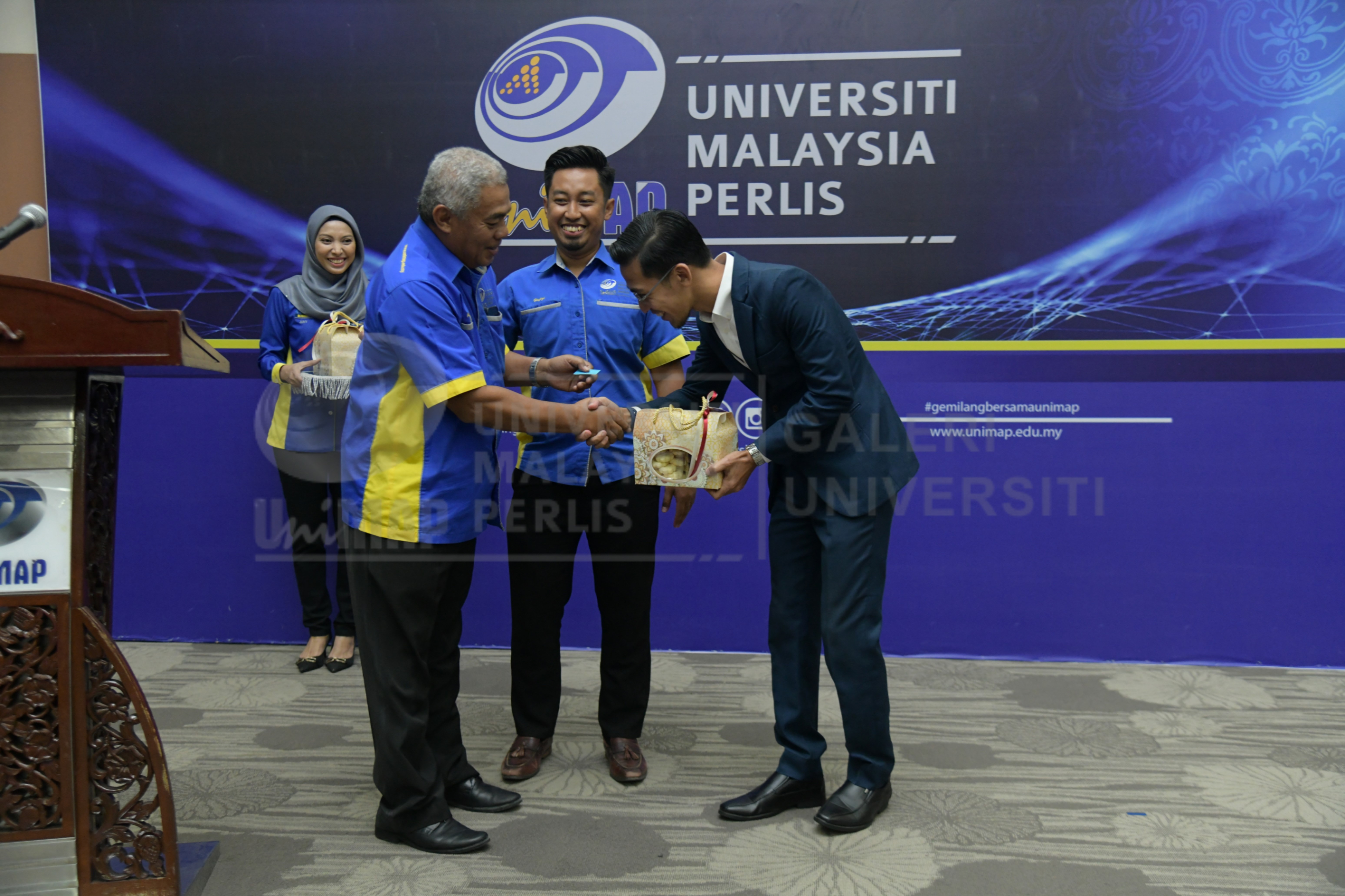 Abstract: Encik Saiful Rahman Bin Ab Rahim, Penolong Pengarah di Bahagian Pengurusan Sekolah Berasrama Penuh, Kementerian Pendidikan Malaysia yang merupakan Alumni UniMAP menyampaikan cenderahati Cabutan Bertuah kepada Prof. Ir. Ts. Dr. Abu Hassan Bin Abdullah di Majlis Perhimpunan Alumni UniMAP 2025 pada 10.03.2025 di Auditorium Canselori Tuanku Syed Sirajuddin,UniMAP.