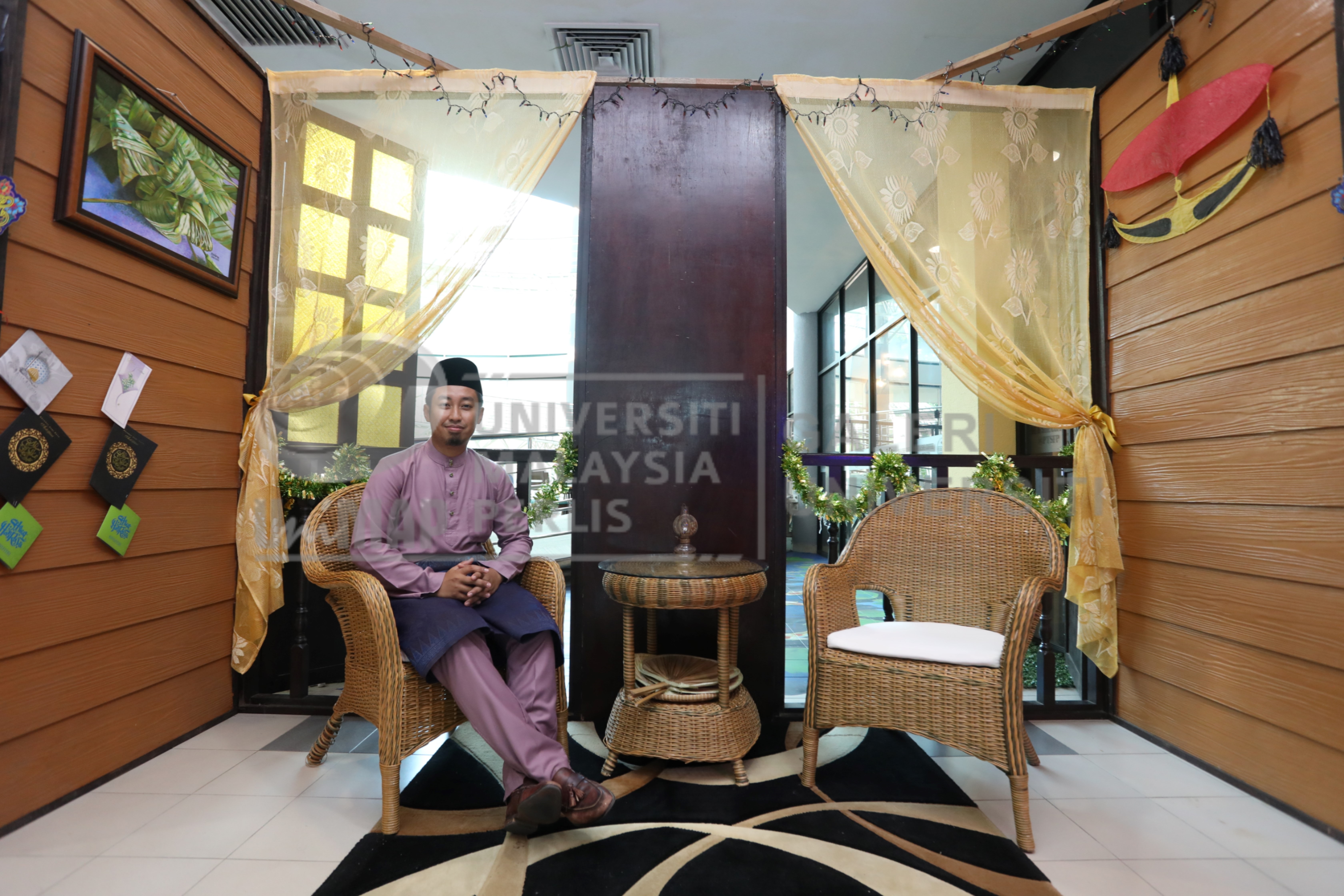Abstract: Prof. Madya Dr. Mohamad Nur Khairul Hafizi Rohani, Pengarah Pusat Perhubungan Alumni mengambil kesempatan bergambar di ruang sudut hiasan Hari Raya Aidilfitri setelah selesainya Sesi Rakaman Takbir Raya Aidilfitri UniMAP di Perpustakaan Tuanku Syed Faizuddin Putra, Kampus Alam UniMAP, Pauh Putra.