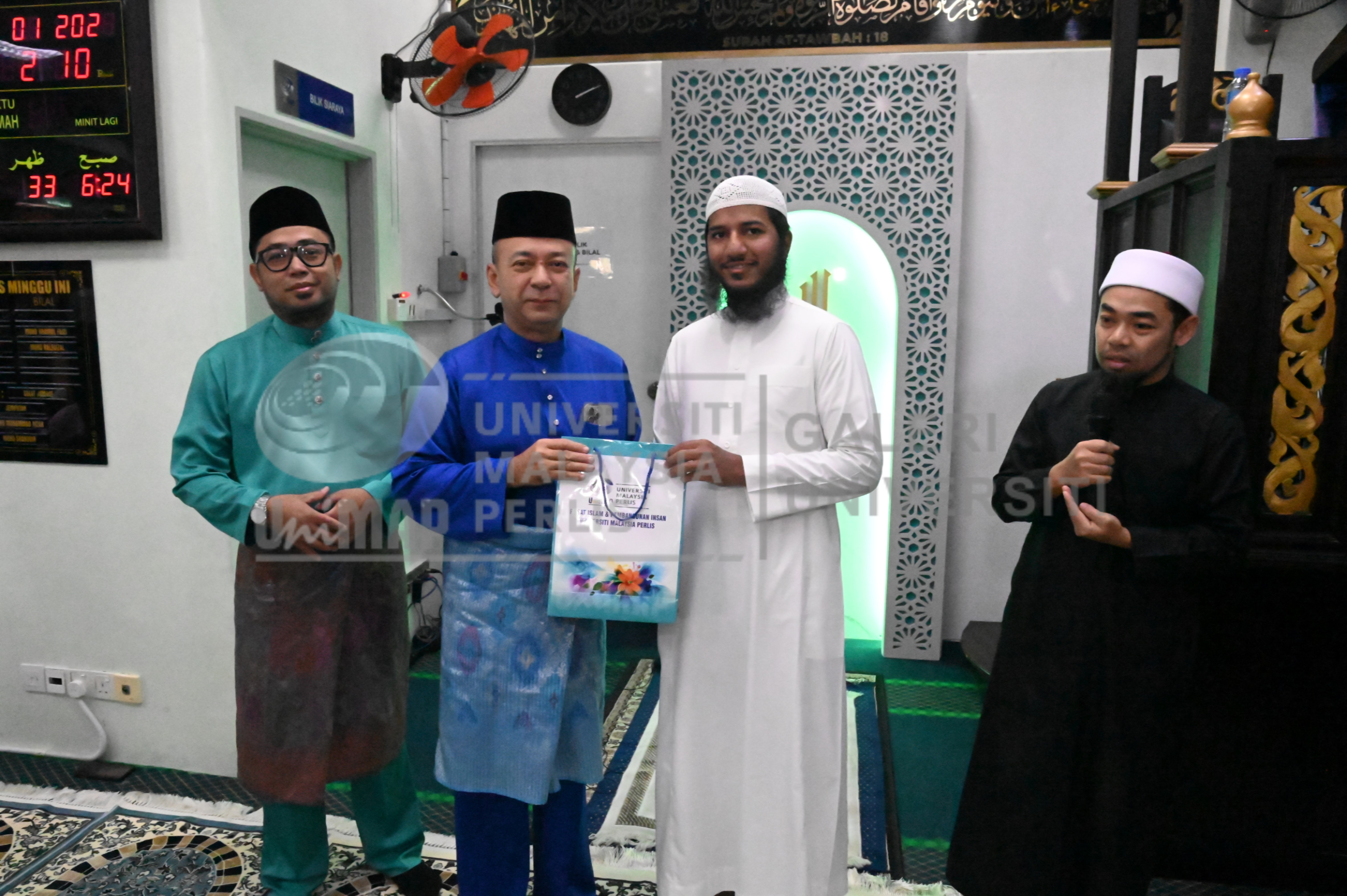 | photo2025082675.jpg | Naib Canselor UniMAP, Dato' Prof. Ts. Dr. Zaliman Sauli diiringi Ustaz Muhammad Adib Bin Hassan, Pengarah Pusat Islam dan Pembangunan Insan (PIMPIN), UniMAP menyampaikan cenderamata kepada Shaikh Fariq Naik selepas sesi Khutbah Jumaat Khas yang berlangsung di Surau Kampus Alam UniMAP, Pauh Putra pada 24 Januari 2025. | 2.58 MB | JPEG | View/Open |